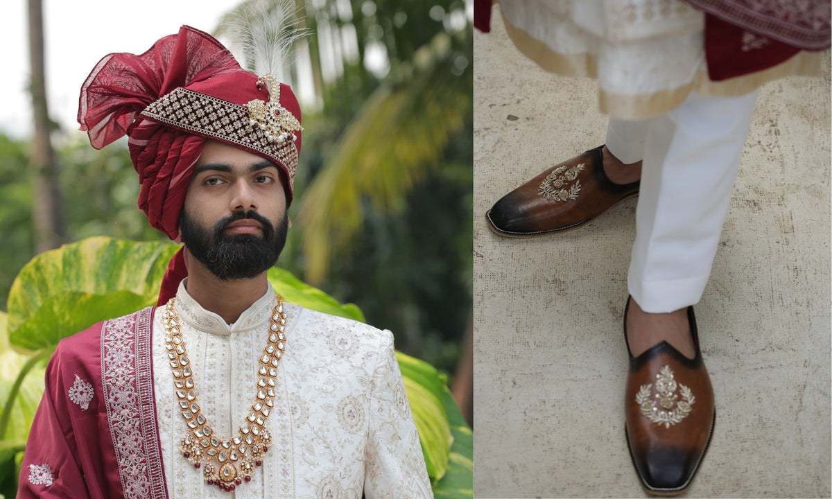 Enhance your off-white maroon sherwani with Vhalam accessories
