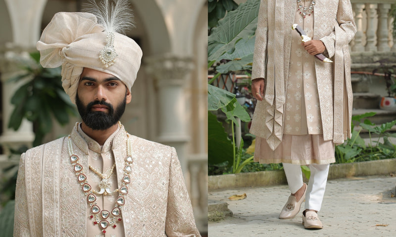 Enhance your light gold / champagne beige sherwani with Vhalam accessories